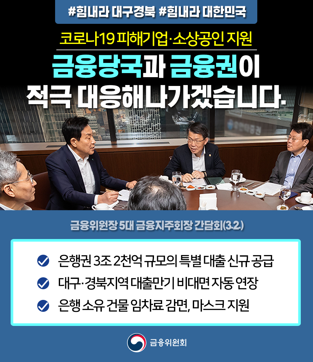 금융위원회는 지난달 28일 ‘코로나19 대응 금융지원 방안’을 발표하며 코로나19로 피해를 입은 중소기업·소상공인에 대한 금융지원 방안이 마련돼 있으나 지원현황 분석 결과 애로를 충분히 해소하는데 미흡한 점이 있었다고 평가했습니다.